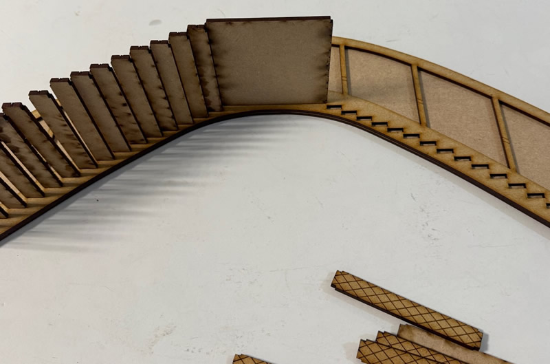 Always dry assemble a part before applying glue, this way you are confident that the part fits easily and there is no worry that the glue will dry before you have the part fully fitted. Our tolerances are tight, so if you come across a tight lug you’ll need to scrape a sharp craft knife along the top and bottom surfaces of the male lug as this produces a small chamfer to help you guide the part in. Having said that, the parts are generally very accurate and we have left clearances where we can, so in most cases this isn’t necessary.