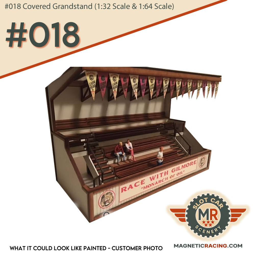 The 1:64 Grandstand is 147mm wide x 77mm deep x 99mm tall.