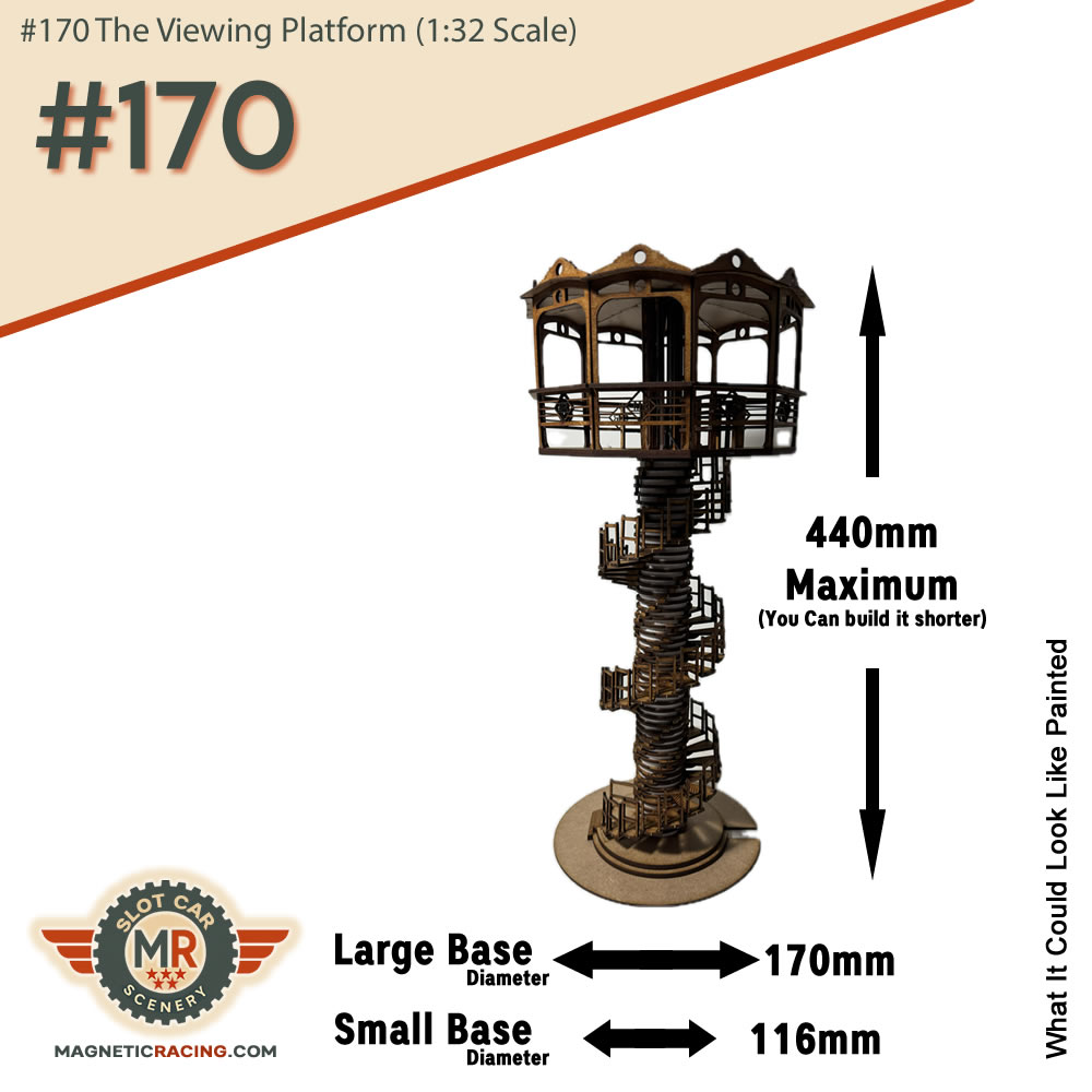 Take your slot car scenery to the next level with this highly detailed MDF viewing platform, designed especially for 1:32 scale tracks. This is a real modeller’s model — packed with fine details and clever design touches that make it stand out from the crowd.