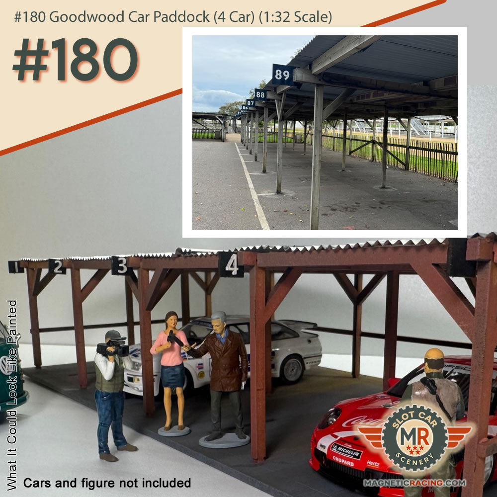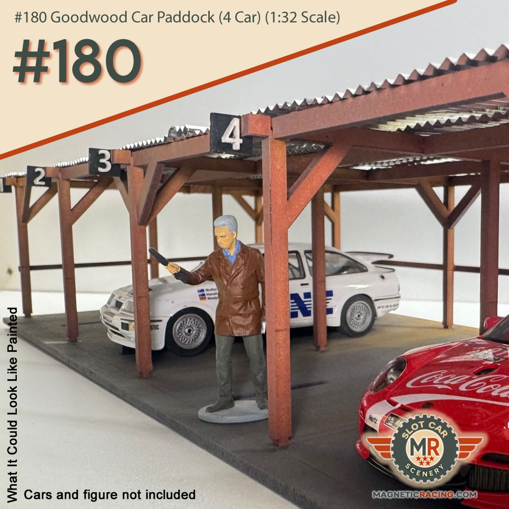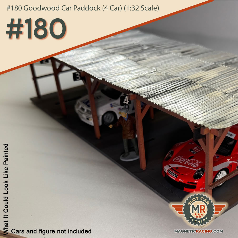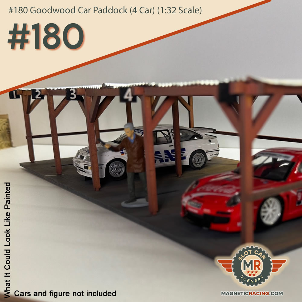 #180 Goodwood Car Paddock (4 Car) – 1:32 Scale | Slot Car Diorama Accessory
