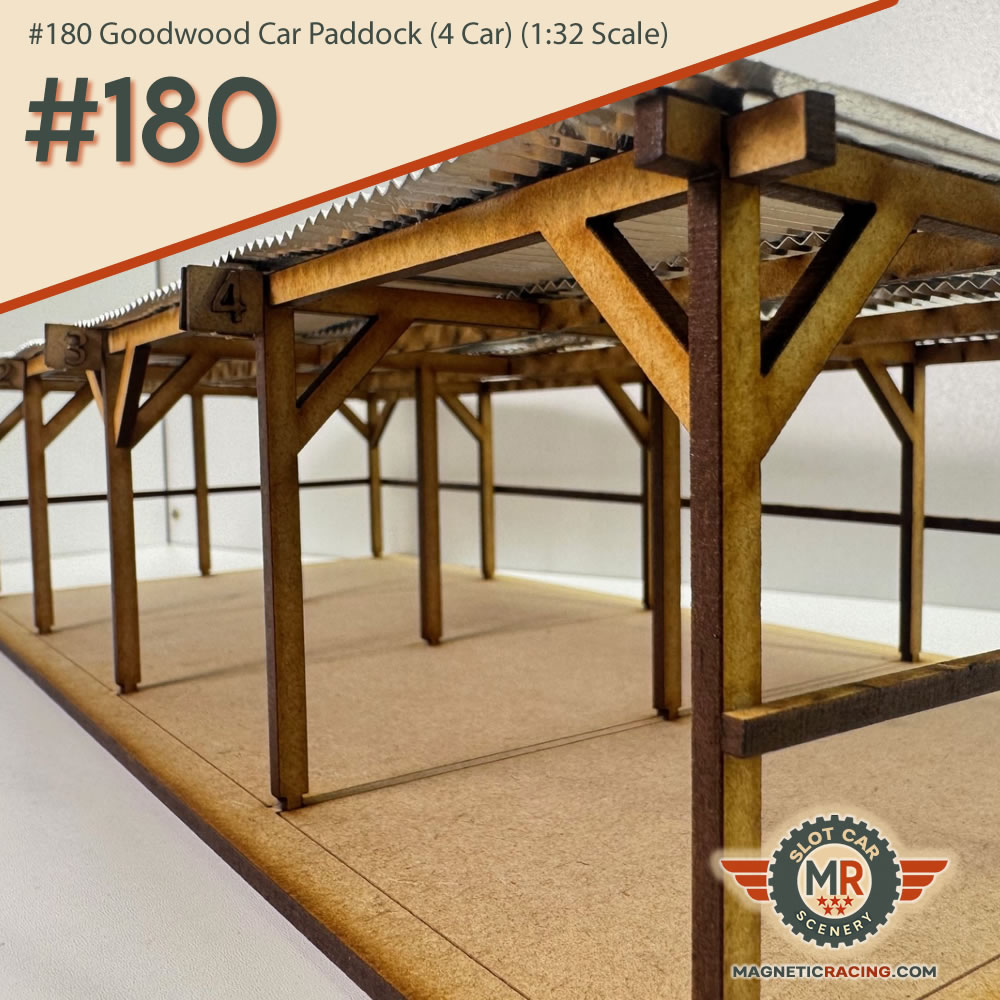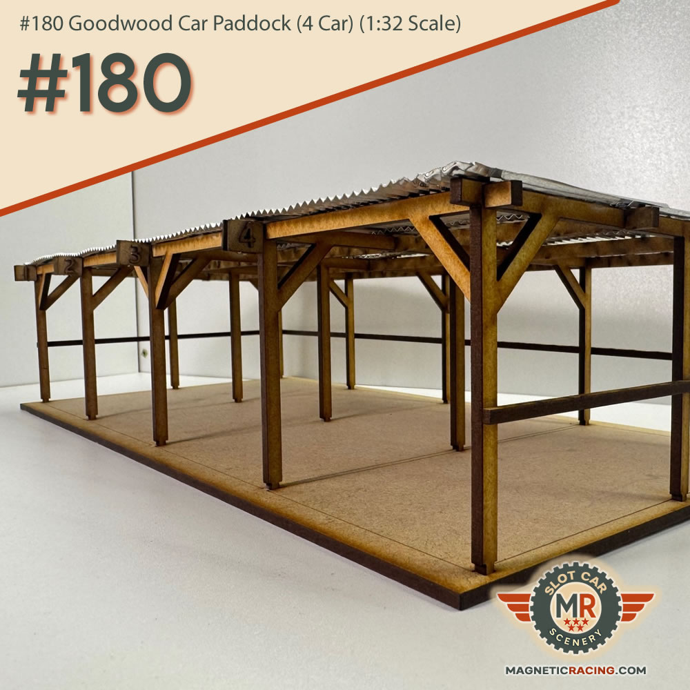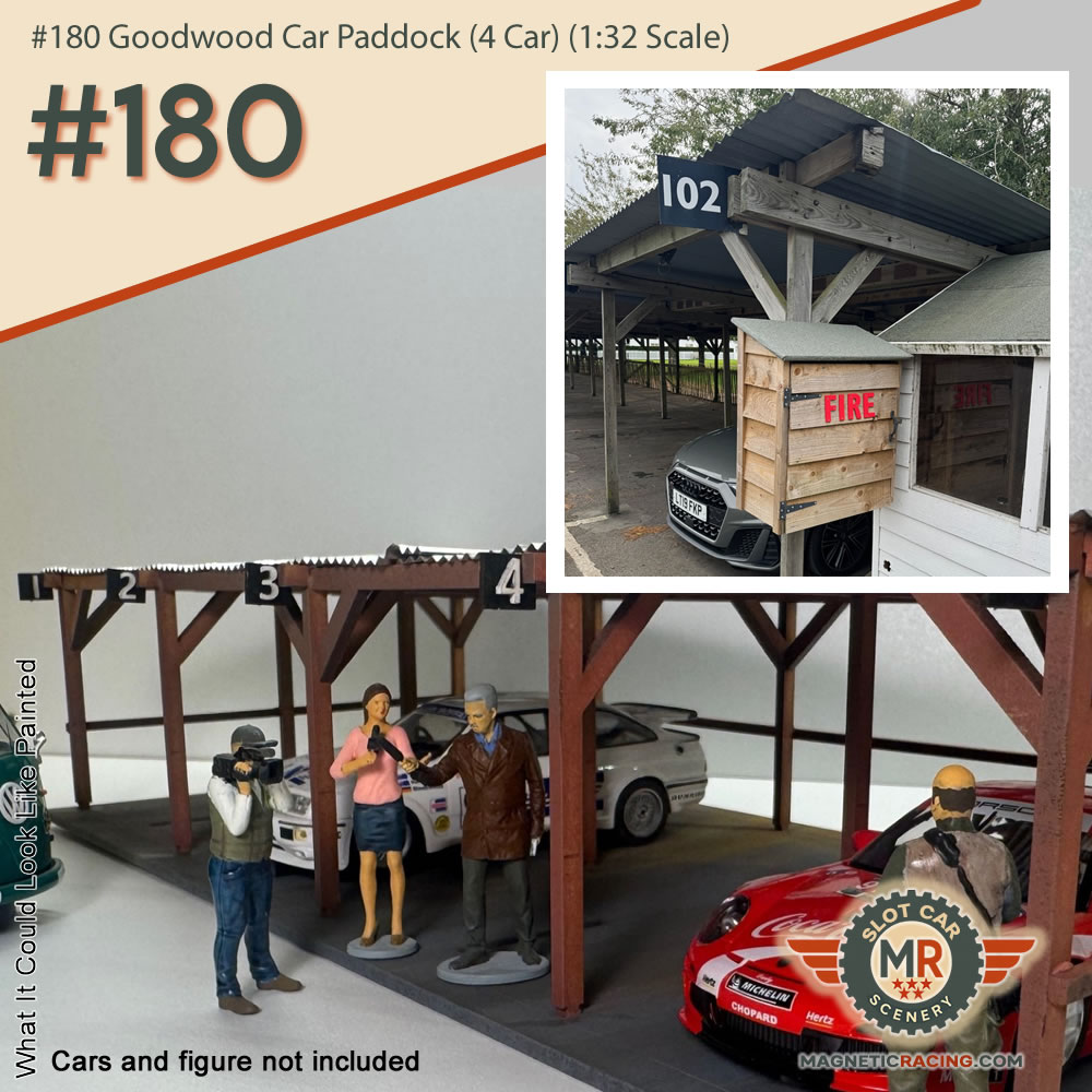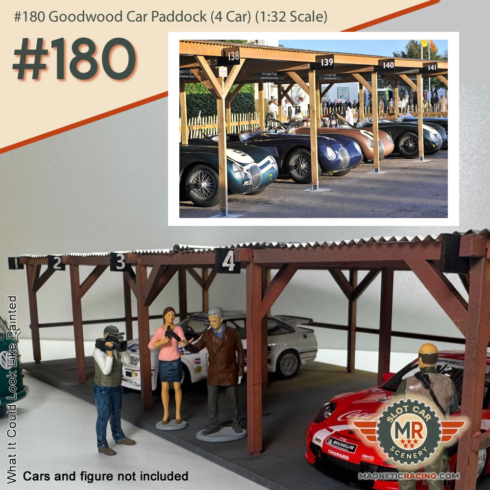#180 Goodwood Car Paddock (4 Car) – 1:32 Scale | Slot Car Diorama Accessory