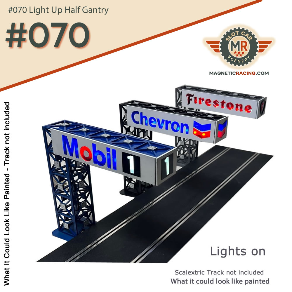 This Half Gantry Advertising Board is perfect for adding over head adverts to your circuit, without taking up too much space. It comes with a choice of bases; a large one with barriers and sand/salt boxes, a small one which is the same size as the gantry frame & and third that slides under the track.