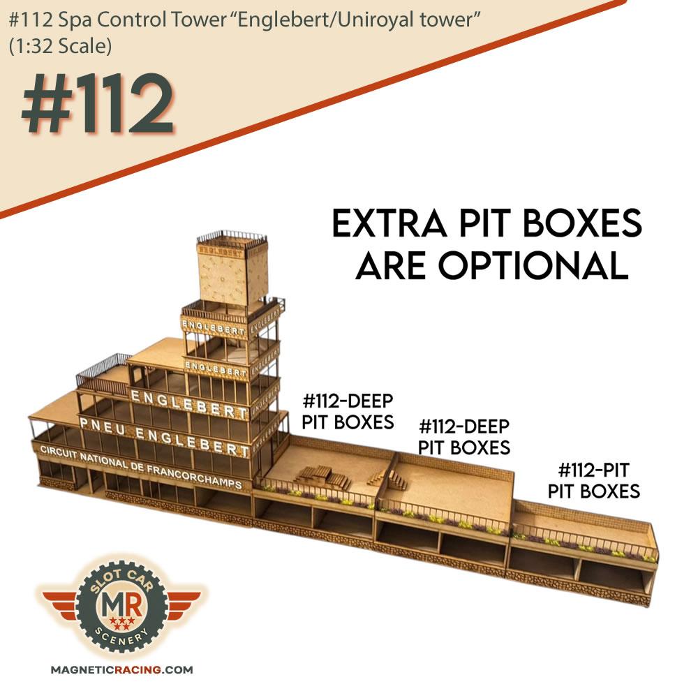 Some of the pictures show the tower with extra pit boxes to the right of the tower, these are extra items that must be purchased separately.